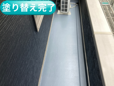ベランダのトップコート塗り替えはこのような感じになります!今回は劣化したボロボロに剝れている場合の施工のご説明をさせて頂きましたが、築年数が数年の住宅などは