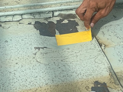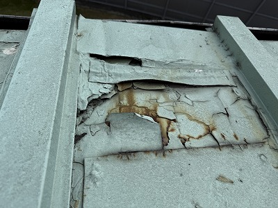 今回の屋根は全体的に浮きや剥がれが顕著なため、部分的な補修では不十分です。徹底的にケレン作業を行い、錆を除去した上で錆止め塗料をしっかりと塗布する必要があります。