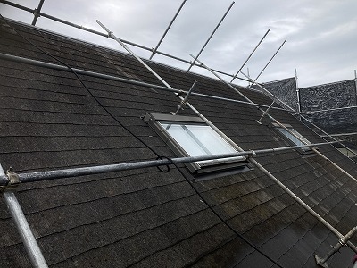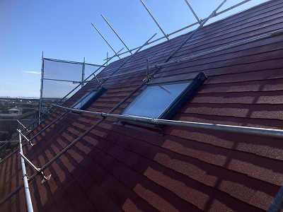 広陵町築18年の住宅を屋根塗装工事 モニエル瓦プライマー塗布
