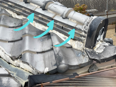 生駒市で瓦屋根の漆喰劣化と漆喰詰め直し作業提案、雨漏りの危機