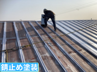 この「密着力」があるから、上塗り塗料(シリコンやフッ素)がしっかり長持ちするのです。屋根塗装以外にも弊社はシャッターなど庇などの錆が発生している場合に塗装を行っています。