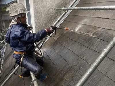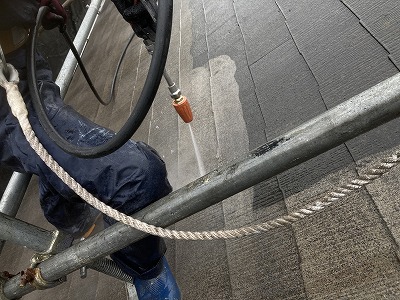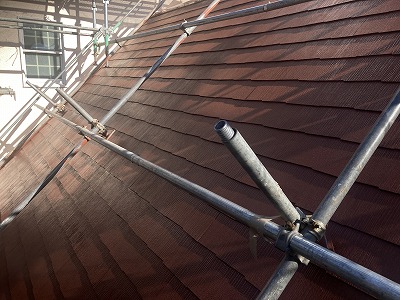 今回は築年数35年以上の戸建て住宅のカラーベスト屋根塗装にご説明させていただきます。今回は急勾配のカラーベスト屋根の屋根足場についてなど、屋根足場についてなど屋根塗装などについてご説明させていただきます。