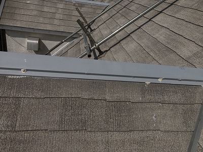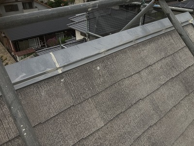 足場設置後、屋根の状態を詳しく確認したところ、棟板金(むねばんきん)部分のビス抜けが数か所確認されました。