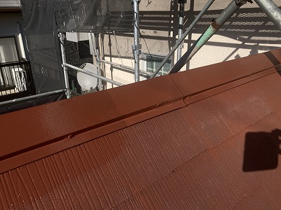 洗浄・乾燥後は、棟板金や屋根材のジョイント部分に変成シリコンコーキングを打ち込みます。